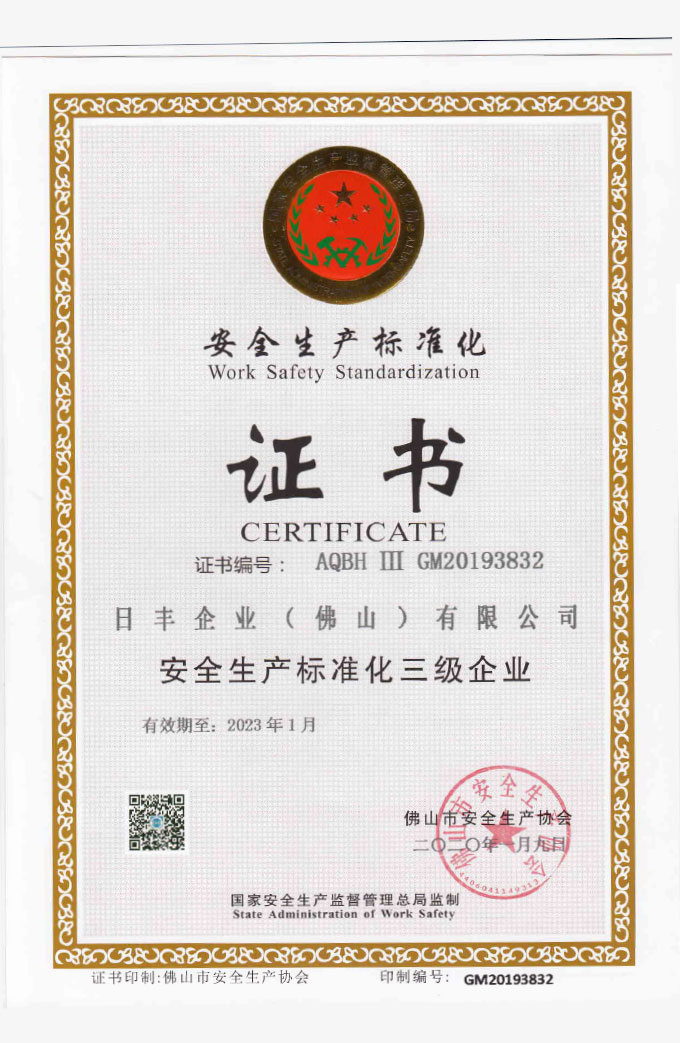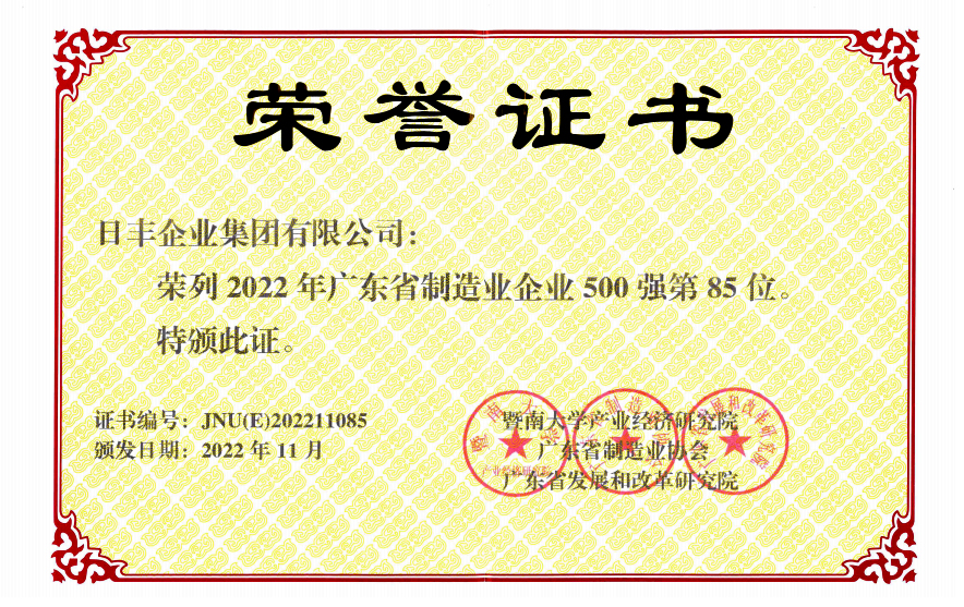 2013 — 2017 跨越发展,开创新篇 2013年以来,日丰开始进入跨越发展的快速发展阶段。佛山三水、天津、湖北黄石、陕西渭南、重庆等大型生产基地的建成投产,使得公司生产规模更是得到空前提升。 2015年11月17日,日丰正式升格为集团公司!日丰也实现了从“佛山日丰”到“中国日丰”的跨越式转变。同年5月17日,日丰正式创建20周年,日丰又迎来一个发展的新纪元!