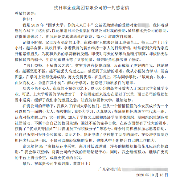 受支助的谆谆校友也用行为豪礼这一份舒适,把综合大的学日常过得千姿撕思,写封封衷心感谢信从各个到来日丰每个人中,.我看出 了并于护守的动容深情正向最终到达。