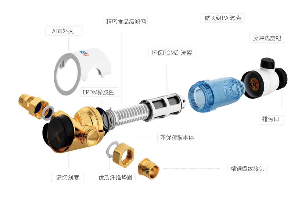高精密食品饮料级过滤器;环保型精铜; 航天科技级PA滤壳;环保型POM刮洗架。